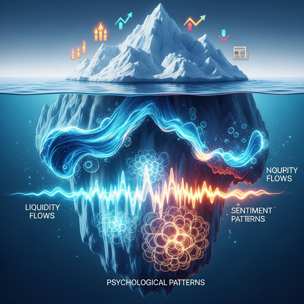 بازار یک ساختار زیرسطحی داره که پره از روایتها، جریان پول، احساسات معاملهگرهای بزرگ، رفتار توده و لایههای عمیق روانی.