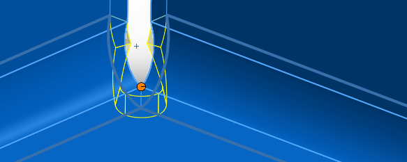 در این گزینه ابتدا در قسمت define corner، دو صفحه پایینی را مشخص میکنیم و سپس new corner را تعریف میکنیم. از معایب این گزینه آن است که تا یکبار آن را کامل تعریف نکنیم و بعد برای ویرایش آن را انتخاب نکنیم، پیش نمایشی به ما نمایش نمیدهد. پس بعد از مشخص کردن corner در قسمت پایینی در قسمت options ، obround را انتخاب کرده و سپس به طور کلی تایید میکنیم و سپس با راست کلیک روی corner relief در نمودار درختی و انتخاب گزینه ادیت، میتوانیم preview را همچون شکل زیر ببینیم: