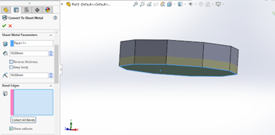 مثالی که برای این گزینه استفاده میکنیم، ده ضلعی بالاست که طراحی مستقیم آن در sheet metal ممکن است کار سختی باشد. پس ابتدا همچون شکل بالا به سادگی در features آن را ایجاد میکنیم. سپس در جعبه ابزار sheet metal، روی گزینه مذکور کلیک میکنیم: