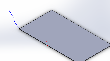 در مرحله بعدی، به دو ابزار swept flange و miter flange میرسیم. ابتدا یک ورق ایجاد کرده و سپس روی ضخامت آن یک sketch ایجاد کرده و پروفیلی مانند شکل زیر را رسم میکنیم: