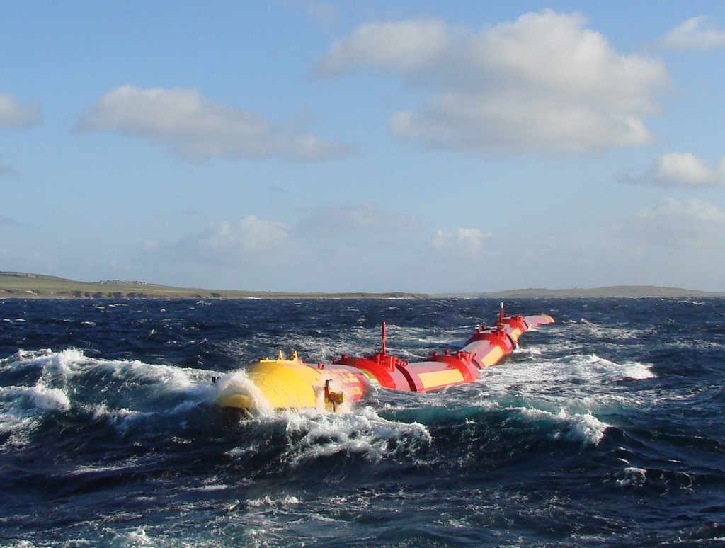 تضعیفکنندۀ موج(Wave attenuator): تضعیفکنندههای موج؟! از چند صفحۀ شناور تشکیل شدهاند که توسط مفاصل متحرک با یکدیگر ارتباط پیدا میکنند. این تضعیف کنندهها بر روی موج سوار شده و با انتقال حرکات آن به پمپهای هیدرولیکی، برق تولید میکنند.