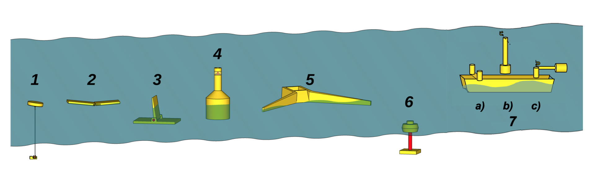 در ادامه به توضیح برخی ابزارهای استحصال برق از انرژی موج میپردازیم.