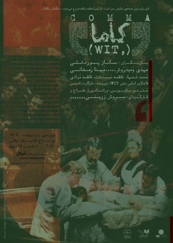 به عنوان نکته پایانی هم بگویم که در عکسهایی که از نمایش منتشر شده، سر بازیگر اصلی طاس است ولی در نمایشی که من دیدم، بر سر بازیگر اصلی پارچه توری مانندی بسته شده بود که به نظرم با توجه به شخصیتی که در صحنه ساخته میشود، پوشاندن نشانههای بیماری از طرف شخصیت انتخاب بهتری است. در کل من نمایش کاما را دوست داشتم و آن را توصیه میکنم و برای عوامل اجراییاش، دوستان عزیزم آرزوی موفقیت میکنم.