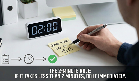 نکته مدیریتی: از «قانون ۲ دقیقه» دیوید آلن (نویسنده کتاب Getting Things Done) استفاده کنید: