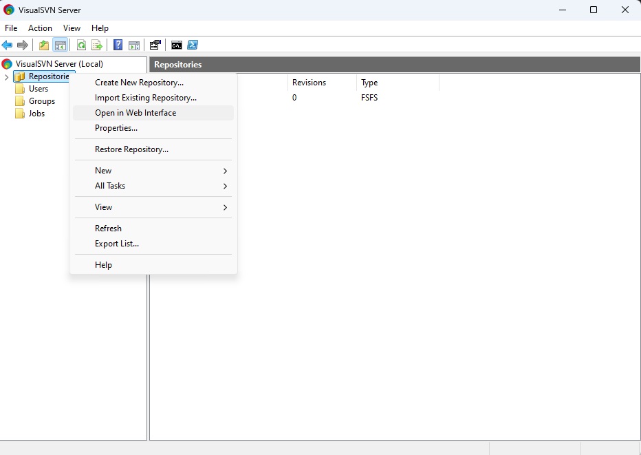 بروی Repositories کلیک راست میکنیم و گزینه Create New Repository... را انتخاب میکنیم.