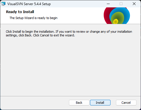 اگه از تنظیماتی که انجام دادید مطمئن هستید، بروری Install کلیک کنید تا SVN Sever شما به راحتی هرچه تمام تر نصب شود.