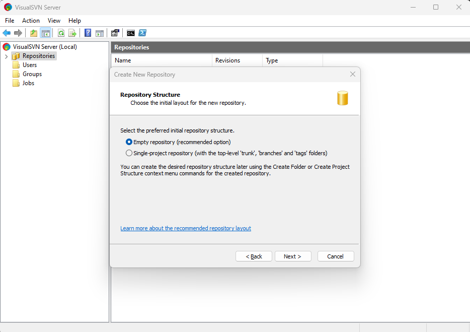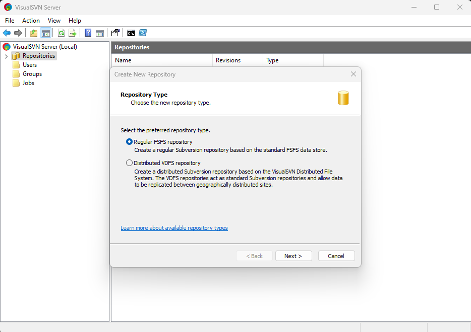 در این قسمت چون نیازی به سیستم های Distributed نداریم و صرفا یک Repository ساده میخوایم، تیک گزینه اول رو میزنیم و برروی Next کلیک میکنیم.
