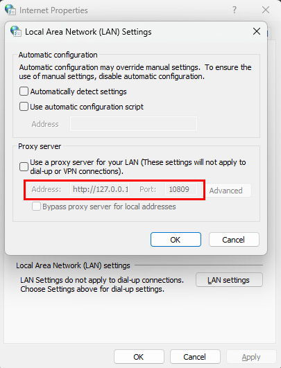 که ما در اینجا آدرس پروکسیمون http://127.0.0.1 هست و پورتی که به این پروکسی گوش میده 10809 هست.