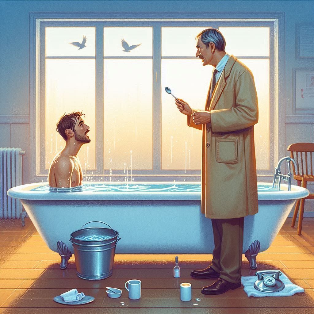 شما چطور میفهمید که یک بیمار روانى به بسترى شدن در بیمارستان نیاز دارد یا نه؟ روانپزشک گفت : ما وان حمام را پر از آب میکنیم و یک قاشق چای خورى، یک فنجان و یک سطل جلوى بیمار میگذاریم و از او میخواهیم که وان را خالى کند. من گفتم : آهان، فهمیدم. آدم عادى باید سطل را بردارد چون بزرگتر است. روانپزشک گفت: نه! آدم عادى درپوش زیر آب وان را برمیدارد. حالا شما هم میخواهید تختتان کنار پنجره باشد؟