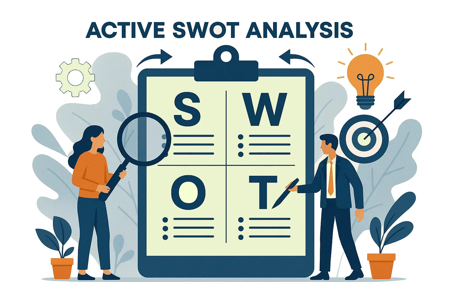 در بخش نقاط قوت که از اصول " سوات " می باشد نیز توانایی تیم در جمعآوری دادههای فعال و تحلیل سریع خودش یک «strength» است. در نمونه سازی بالا اگر سازمان بهجای ارزیابی فعال صرفاً منفعل عمل میکرد، این فرصت از دست میرفت. بهاینترتیب، ارزیابی فعال نهتنها ورودی دقیق برای ماتریس SWOT فراهم میآورد، بلکه کیفیت تصمیمگیری و سرعت واکنش شرکت را نیز ارتقا میدهد.