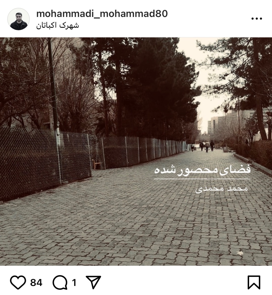 🔸مدتی است در شهر تهران فضایهای مختلفی که ماهیت فضای عمومی و اجتماعی دارند توسط نهادهای قدرت حصار یا دیوارکشی میشوند, اینبار در شهرک اکباتان، محوطهها و فضاهای سبز این شهرک در حال حصارکشی شدن است. این زیرساخت اجتماعی برای ساکنین شهرک اکباتان بسیار حائز اهمیت است. اگر بخواهیم از متن “حق به شهر” هانری لوفور وام بگیریم، شهری که حیات مدنی و همزیستی اجتماعی را تعمیم ندهد تبدیل به سوژه مصرفی منفعل شده که نوعی نیازهای فردی در راس قرار میگیرد، که این نیازها قبل از اینکه به رسمیت شناخته شود، دستکاری شدهاند. در مقابل نیاز اجتماعی بنیان و پایه انسان شناختی دارد.