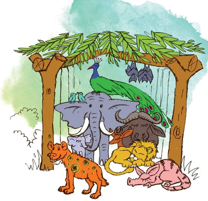 🔹 پارسی: سالها پیش، وقتی که سنگها هنوز نرم بودن و درختها هنوز حرف میزدن، همهی حیوونا با هم زیر یه آلونک برگی زندگی میکردن.