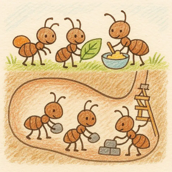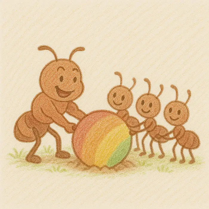 🔷 روزی روزگاری در دل یک باغ بزرگ و سبز، کلونی شلوغ و پرجنبوجوشی از مورچهها زندگی میکردند. این مورچهها همه باهم کار میکردند، غذا جمع میکردند، لانه میساختند و از یکدیگر مراقبت میکردند.