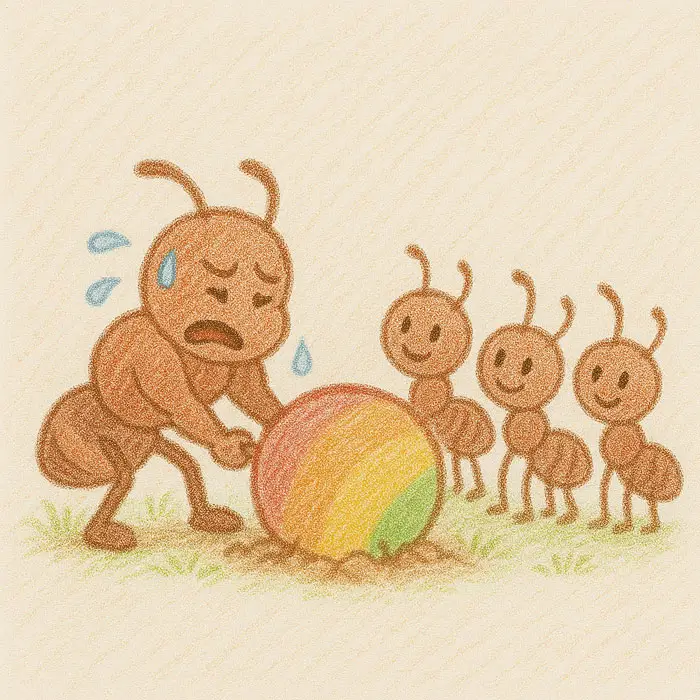 🔷 یک روز صبح، وقتی بقیه مورچهها داشتند آماده میشدند که برای جمعآوری غذا بروند، مانی با غرور گفت: