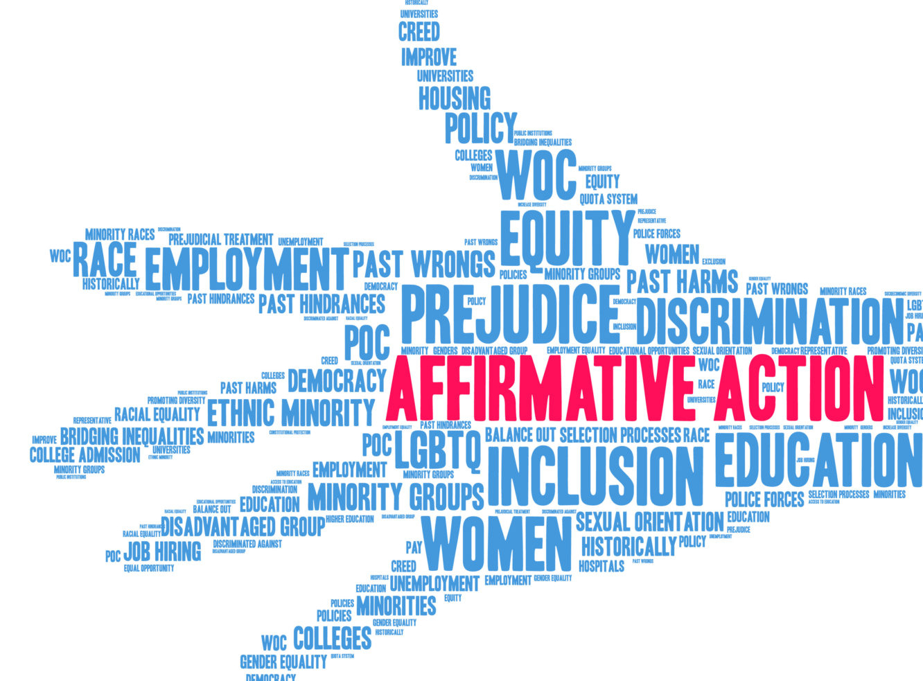 تقریباً در همان زمان، مفهوم «تبعیض مثبت» پدیدار گشت. در تصور اولیه، تبعیض مثبت قرار بود سرمایهگذاری در منابع انسانی را برای افرادی فراهم کند که بر اثر تبعیض دچار محرومیت شده بودند تا بتوانند در شرایطی منصفانه به رقابت بپردازند. همانطور که رئیسجمهور لیندون بی. جانسون توضیح داد، برای اینکه فردی که پیشتر در زنجیر بوده در یک مسابقه پیروز شود، صرفاً باز کردن زنجیرها کافی نیست.