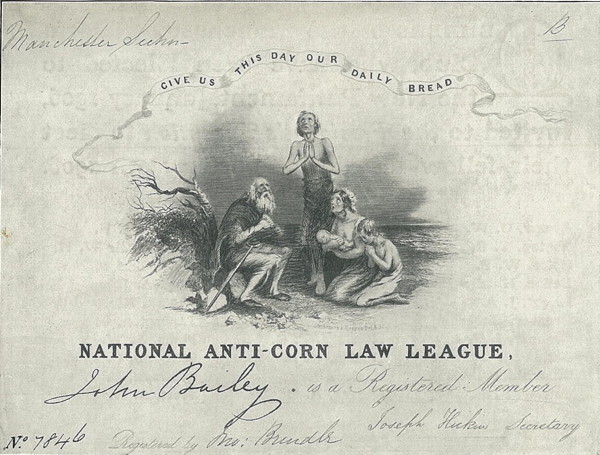 در سال ۱۸۱۵، به دنبال جنگهای ناپلئونی، بریتانیای کبیر تعرفههای وارداتی سنگینی را بر طیف وسیعی از کالاهای کشاورزی خارجی وضع کرد. این قوانین که مجموعاً تحت عنوان «قوانین غلات» (Corn Laws) شناخته میشدند، واردات کالاهای کشاورزی خارجی را تا زمانی که قیمت گندم در داخل کشور به ۸۰ شیلینگ در هر «کوارتر» (واحد سنجش حجم غلات) نمیرسید، ممنوع میکردند. در سال ۱۸۲۸، این قوانین اصلاح شدند تا امکان اعمال «تعرفههای شناور» (Sliding scale) فراهم شود؛ بدین معنا که با افزایش قیمتها در داخل، تعرفهها کاهش مییافت. با این حال، این تدابیر همچنان به شدت حمایتگرایانه (Protectionist) باقی ماندند و توسط اندیشمندان لیبرال و دولتمردان در سراسر جزایر بریتانیا محکوم شدند. حدود ۱۱ سال بعد، در سال ۱۸۳۹، «لیگ ضد قوانین غلات» (Anti-Corn Law League) با هدف لابیگری برای لغو این قوانین تأسیس شد. رهبران این گروه ریچارد کابدن (Richard Cobden) و جان برایت (John Bright) بودند که هر دو در پارلمان عضویت داشتند. آنها برای یک دستور کارِ لیبرالِ جامع استدلال میکردند، اما در خط مقدم تلاشهایشان، آرمانهای تجارت بینالملل و صلح قرار داشت. تلاشهای آنان موفقیتآمیز بود. در سال ۱۸۴۶، قوانین غلات به طور مؤثر لغو شد (هرچند تعرفههای اندکی بر برخی کالاهای کشاورزی باقی ماند) و لیگ منحل گردید.