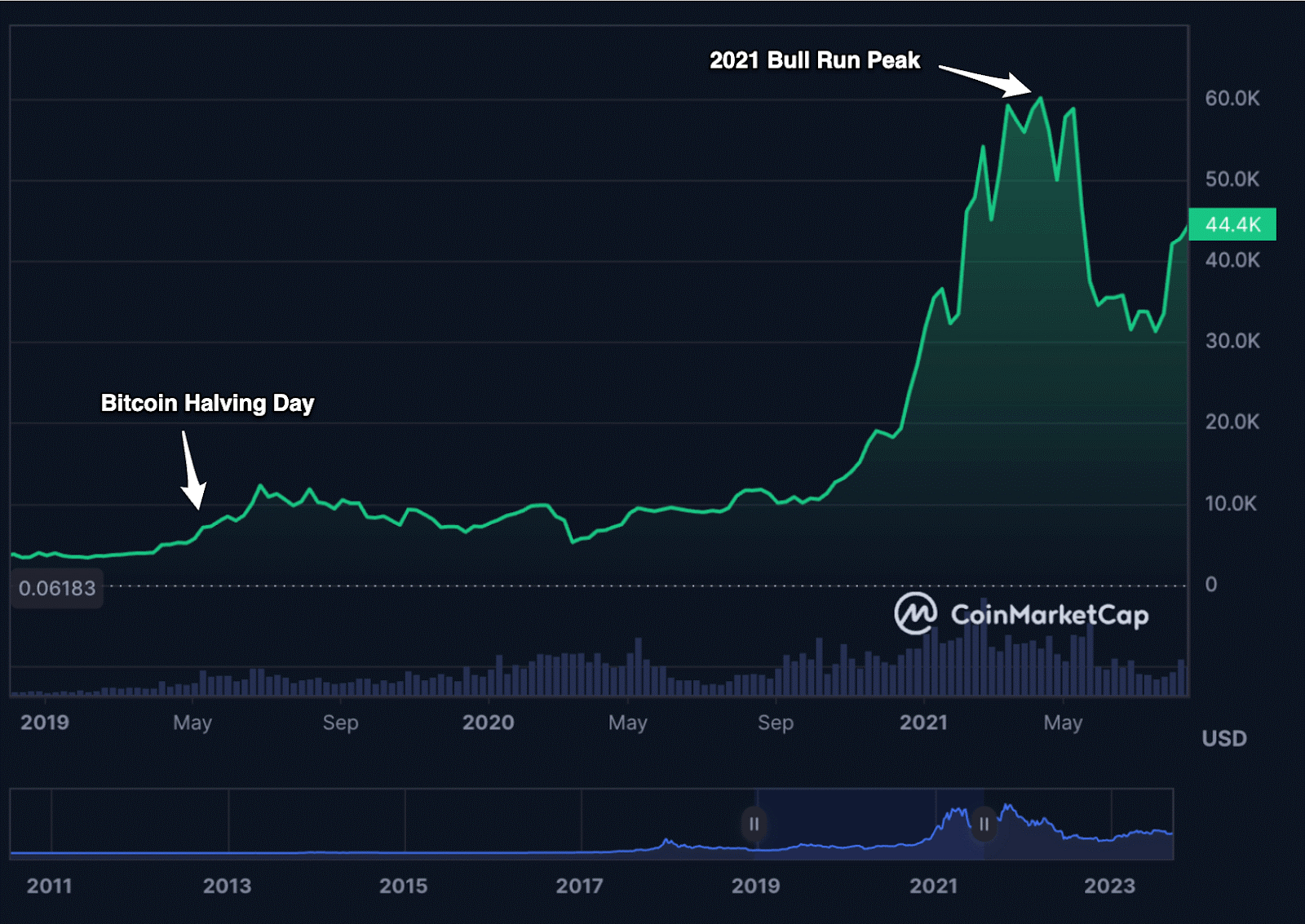 اگر کسی تصمیم میگرفت ۱۰۰ دلار در بیتکوین در ۱۱ مه ۲۰۲۰، زمانی که قیمت آن ۸,۶۰۵ دلار بود، سرمایهگذاری کند، اکنون ارزش این سرمایهگذاری تا ۱۴ سپتامبر ۲۰۲۳، ۳,۰۵۴ دلار خواهد بود. به عبارت دیگر، سرمایهگذاری ۱۰۰ دلاری در بیتکوین زمانی که قیمت آن زیر ۱۰,۰۰۰ دلار بود، تنها بیش از سه سال پیش، اکنون بیش از ۲,۹۵۴ دلار سود (حدود ۲۹ برابر سرمایه اولیه) به دست آورده است.