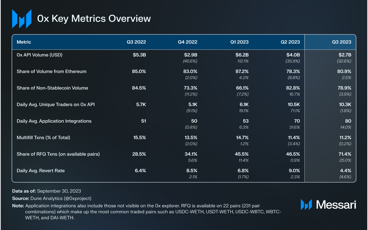 Messari — “0x Q3 2023 Brief”, گزارش فصلی (Quarterly Brief) عملکرد پروتکل 0x در سهماهه سوم ۲۰۲۳.