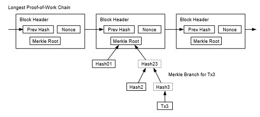 امکان تایید پرداخ تها بدون اجرای یک گره کامل شبکه وجود دارد. یک کاربر فقط نیاز دارد یک نسخه از سربرگهای بلوک طولانی ترین زنجیره اثبات کار را نگه دارد، که م یتواند با پرس و جو از گره های شبکه تا زمانی که متقاعد شود طولانی ترین زنجیره را دارد، به دست آورد و شاخه مرکلی که تراکنش را به بلوکی که در آن زمانبندی شده است، متصل میکند. او نمیتواند خودش تراکنش را بررسی کند، اما با اتصال آن به جایی در زنجیره، م یتواند ببیند که یک گره شبکه آن را پذیرفته است، و بلو کهای اضافه شده پس از آن بیشتر تایید م یکنند که شبکه آن را پذیرفته است.