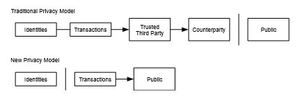 مدل بانکداری سنتی با محدود کردن دسترسی به اطلاعات به طر فهای درگیر و طرف ثالث مورد اعتماد، سطحی از حریم خصوصی را به دست می آورد. ضرورت اعلام عمومی تمام تراکنشها این روش را غیرممکن میکند، اما حریم خصوصی همچنان میتواند با قطع جریان اطلاعات در جای دیگر حفظ شود: با نگه داشتن کلیدهای عمومی به صورت ناشناس. عموم مردم میتوانند ببینند که کسی مقداری را به شخص دیگری میفرستد، اما بدون اطلاعاتی که تراکنش را به کسی مرتبط کند. این مشابه سطح اطلاعات منتشر شده توسط بورسهای اوراق بهادار است، جایی که زمان و اندازه معاملات فردی، “نوار”، عمومی میشود، اما بدون اینکه بگوید طرف ها چه کسانی بودند.