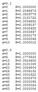 با اجرای برخی نتایج، میتوانیم ببینیم که احتمال با z به طور نمایی کاهش مییابد.