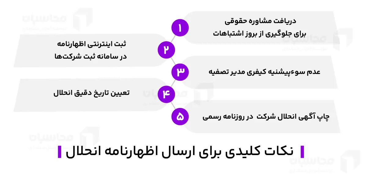 آگهی رسمی را فراموش نکنید: چاپ در روزنامه رسمی برای رسمیت انحلال الزامی است.