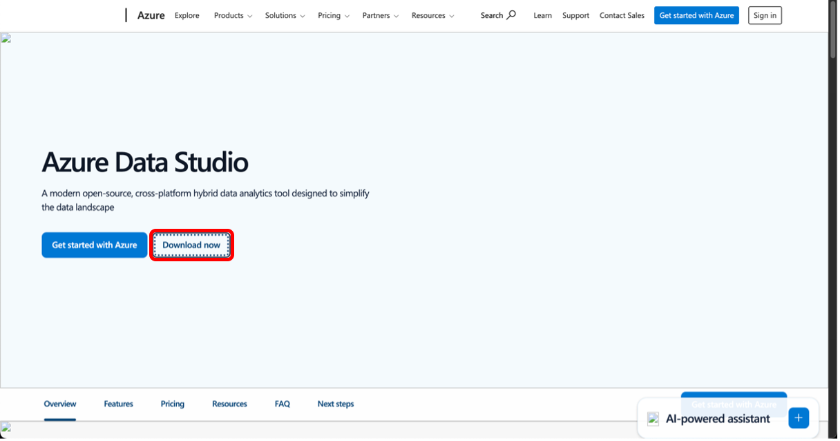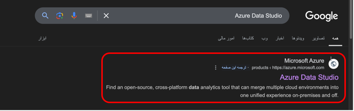 عبارت Azure Data Studio را در مرورگر جستجو کنید.