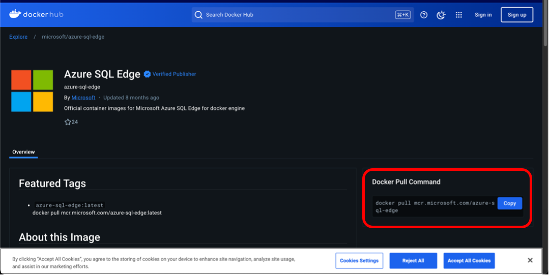 عبارت azure-sql-edge docker را در مرورگر جستجو کنید.