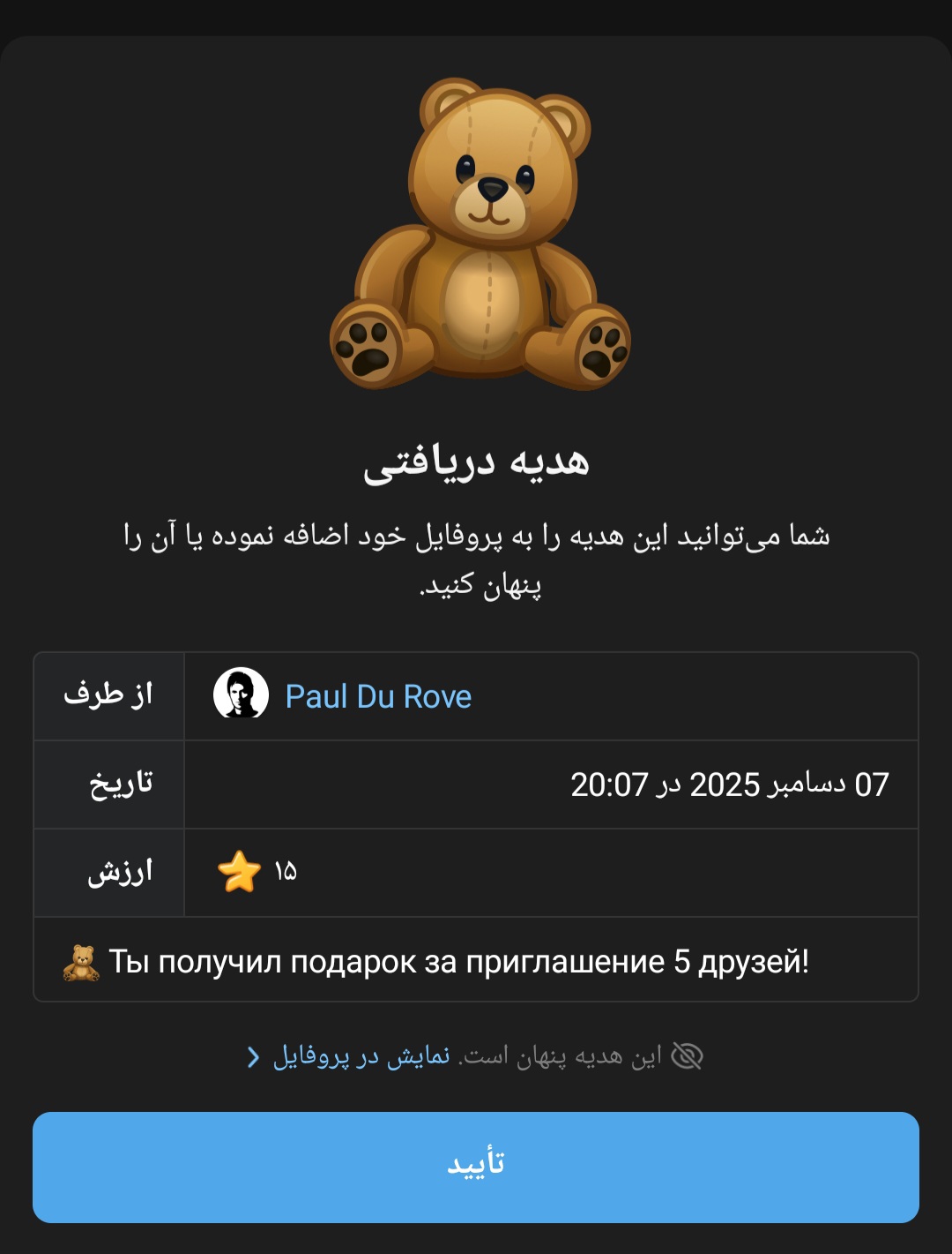 بعد ۱ ساعت واریز ارسال میکنن تدی رو