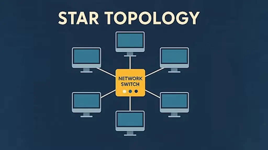 STAR Topology: توی این مدل یک دستگاهی به عنوان دستگاه مرکزی قرار داره و تمام دیگر تجهیزات به این دستگاه متصل میشن.