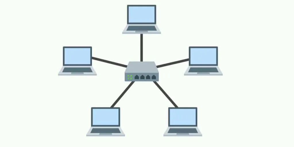 توی توپولوژی STAR کامپیوترها ارتباط مستقیم باهم ندارن و هرکی، هر دادهایی قراره ارسال کنه، باید از این دستگاه مرکزی عبورش بده. سال ها قبل یک دستگاهی وجود داشت به اسم HUB که از اون برای دستگاه مرکزی این توپولوژی استفاده میکردن، امروزه یک دستگاه هوشمندتری اومده به اسم Switch و سوئیچ تو شبکه های STAR امروزه استفاده میشه.