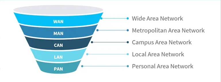 LAN یا Local Area Network: شبکه LAN به شبکههای محلی اشاره داره. شبکههایی که تا چند صد متر میتونن وسعت داشته باشن. شما اگه تو خونت مودم داشته باشی و دستگاه های مختلفی رو بهش وصل کرده باشی، یه LAN تشکیل دادی. همچنین، WLAN هم داریم.