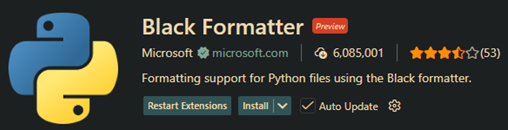 این افزونه یکی از بهترین ابزارها برای فرمت خودکار کد پایتون است و به شما کمک میکند تا بدون تلاش زیاد، کدهای تمیز و استاندارد داشته باشید.