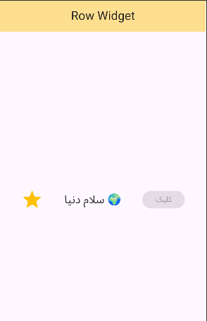 Row( children: [ Icon(Icons.star), Text("سلام"), ElevatedButton( onPressed: () {}, child: Text("کلیک"), ), ], )