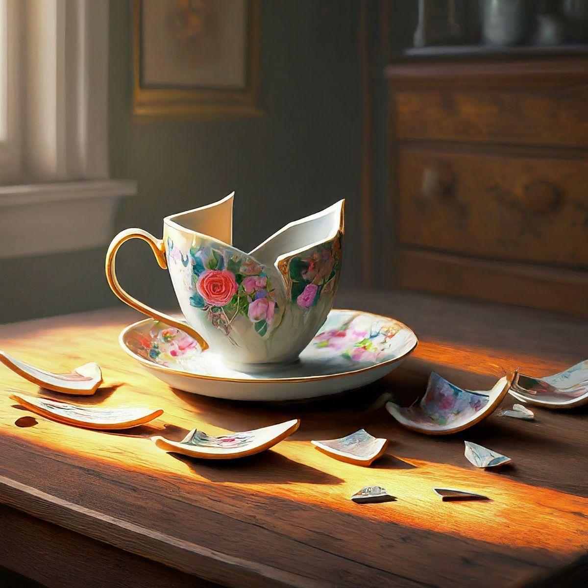 تصمیمی ناگهانی در ذهنش شکل گرفت. تکه های شکسته را با دقت کنار هم قرار داد، گویی که پازلی را حل می کرد. با کمی صبر و حوصله، فنجانی جدید از دل تکه های شکسته پدیدار شد. فنجانی با طرحی منحصر به فرد، که داستان زندگی و گذر زمان را در خود حک کرده بود.