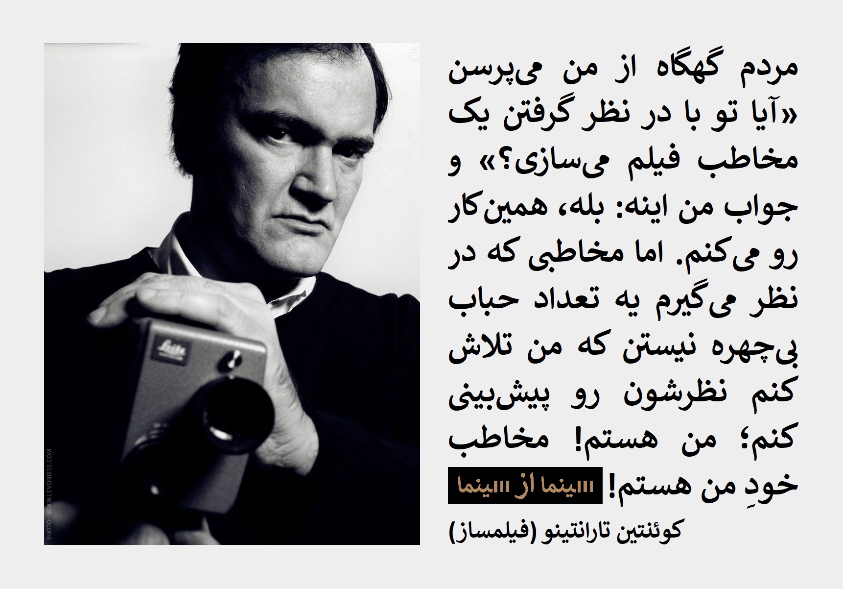 شهید سیدمرتضی آوینی:سینما، به عنوان هنر، وسیلهای است در خدمت بیان هنری، اگرچه آنچه که در تاریخ بشر منشأیت اثر دارد «سینمای تجارتی» است. «سینمای هنری» – به تعبیر مصطلح – میتواند با پرهیز از جلوهفروشیهای روشنفکرمآبانه نوعی «محادثه و همزبانی» باشد در میان کسانی که زبان یکدیگر را میفهمند؛ در این صورت، سینما باید آن «مخاطب عام» را که گفتیم، رها کند و از «قیمومت تجارت» خارج شود. آن مخاطب عام که گفتیم، سلایق خود را از روزنامهها و مجلات ژورنالیستی، ترانههای روز، سینمای تجارتی، برنامههای مصرفیِ روزمرۀ رادیو و تلوزیون و… میگیرد، و این همه غرقابی است از ابتذال، سطحینگری، بیدردی، تفنن، بیمایگی و نان را به نرخ روز خوردن. […] فیلمساز میتواند مخاطب خاصی برای خویشتن برگزیند، مشروط بر آنکه راهی برای نجات از تجارتگرایی و اصالت گیشه پیدا کند. […] جذابیت از لوازم ذاتی سینماست و از این نظر بین سینمای تجارتی و غیر تجارتی تفاوتی نیست. سینمای غیرتجارتی و بالاخص سینمایی که میخواهد در خدمت اسلام قرار بگیرد، اگرچه نمیتواند مسئلۀ جذابیت را به طور کامل نفی کند، اما باید بتواند از آن «عبور کند.» […] هنرمندان باید روی به حق بیاورند و چون اینچنین شد، هنرشان «ذکر» خواهد شد و مخاطبِ ذکر، فطرت الهی بشر است. (از مقالۀ «تأملاتی در ماهیت سینما»)