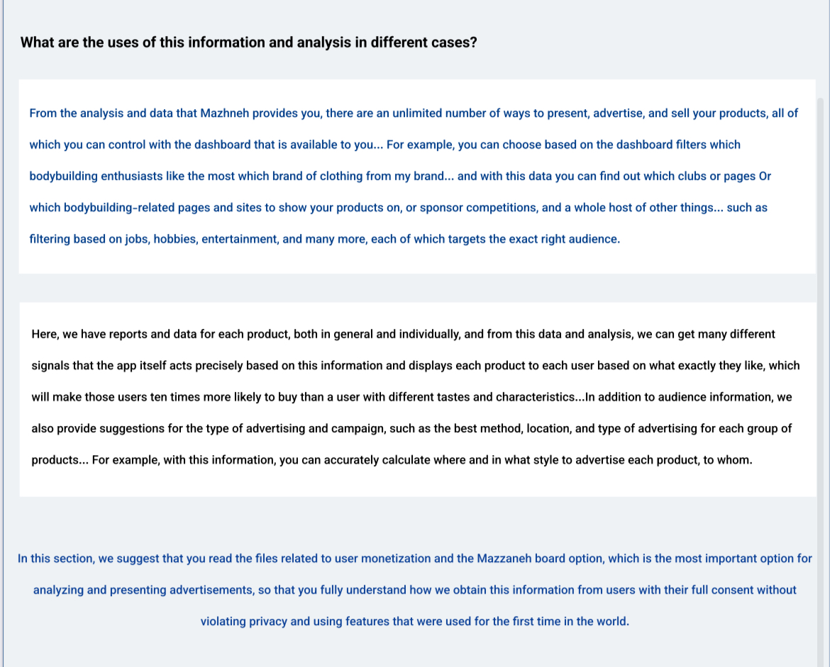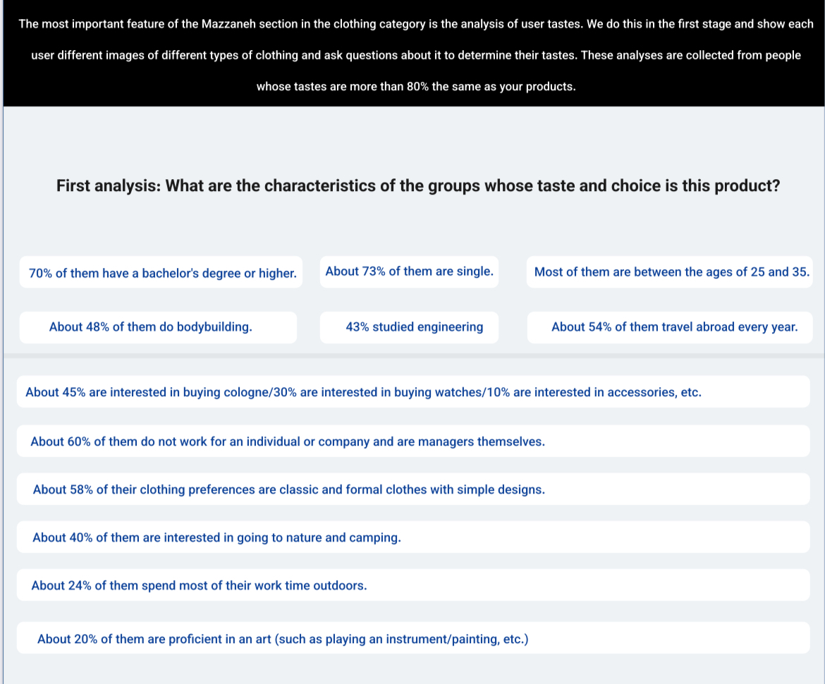 From education and hobbies to career type, age, and even relationship status, Mazzaneh creates a real persona for the exact people who engage with each product