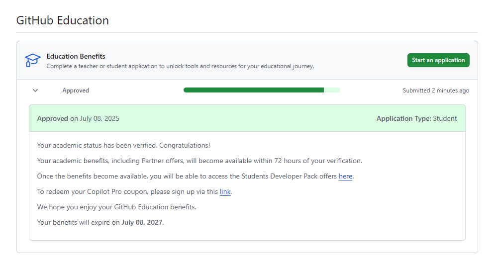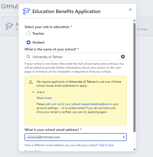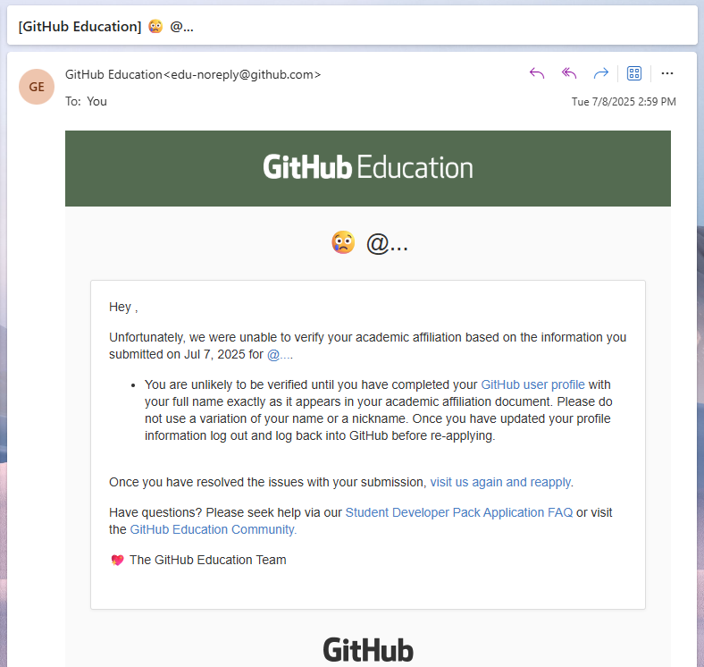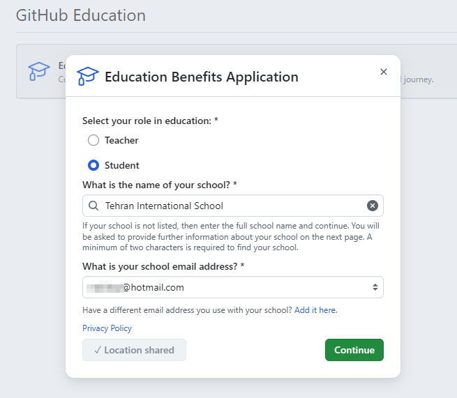 GitHub Education - Application Review Request for the GitHub Student Pack