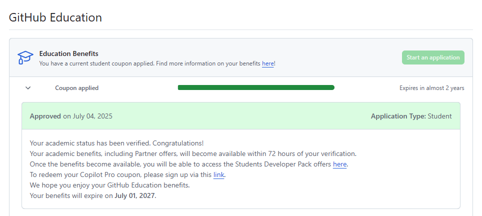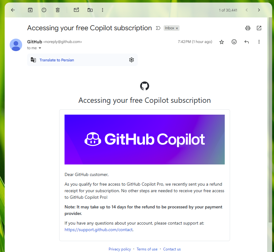 حالا خبر خوب اینکه شما میتونید با فعال کردن بسته توسعه دهنده دانشجویی گیتهاب (GitHub Student Developer Pack) برای۲ سال به کوپایلوت پرو، رایگان دسترسی داشته باشید.