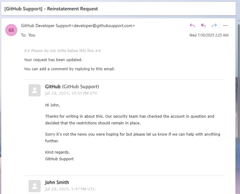 البته به نظر من چون اطلاعات فیک تابلویی زدم و روی این اکانت تو مرحله آزمون خطا بودم شاید خودمم جایی سوتی دادم چون قبلاً هم استفادههای دیگهای با این اکانت داشته بودم یا شاید همون ایمیل اولی که اومد باید سریع مشخصاتم رو اصلاح میکردم یا شاید چون ایمیل جدیدی بهش وصل کردم که شبیه ایمیل اکانت دیگم بود و فکر کردند داپلیکیت هست و شاید چون تو مرحله بازنگری انسانی رفته حساسیت روش زیاد شده. چون به نظر من حتی اگر هر مشکلی تو پروسه بوده باشه فوقش همون درخواست دانشجویی رو میتونن لغو کنند نه اینکه دسترسی به کل اکانت رو ببندند؛ این یعنی شاید مشکل از جای دیگهای بوده.
