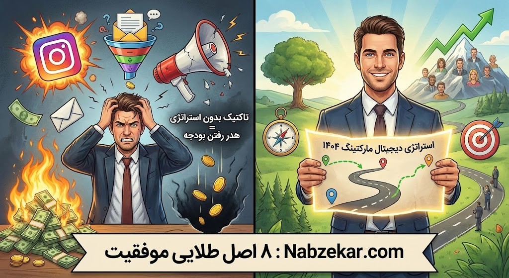 پست گذاشتن، تبلیغ دادن یا ایمیل زدن، فقط ابزار هستند. اما "استراتژی" یعنی بدانید چرا دارید این کار را میکنید و قرار است دقیقاً به کجا برسید. اگر میخواهید امسال بودجهتان را آتش نزنید و با تغییرات بازار دیجیتال مارکتینگ ایران در سال ۱۴۰۴ هماهنگ شوید، این ۸ اصل طلایی را که حاصل تجربههای تلخ و شیرین بازار است، بخوانید.