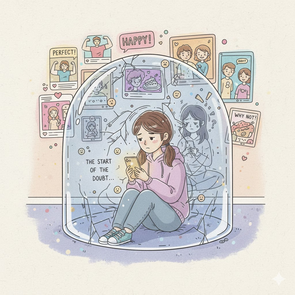 حالا وقتی با زندگیهای بینقص و جذاب اینفلوئنسرها در اینستاگرام یا تیکتاک روبهرو میشوند، ناخودآگاه خودش را با آنها مقایسه میکند. برای ما بزرگترها ممکن است واضح باشد که پشت آن عکسها و ویدیوها ساعتها تدوین، انتخاب لحظه و حتی فیلترگذاری وجود دارد، اما برای نوجوان، این تصویر اغلب تبدیل به معیار واقعی میشود.