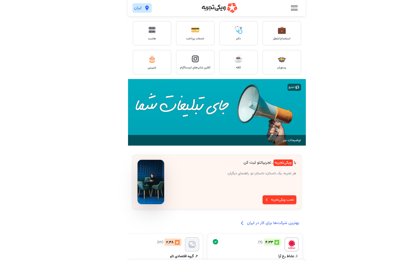 و مستقیم میبرتت به پروفایل همون شرکت یا فروشگاه توی «ویکی تجربه».