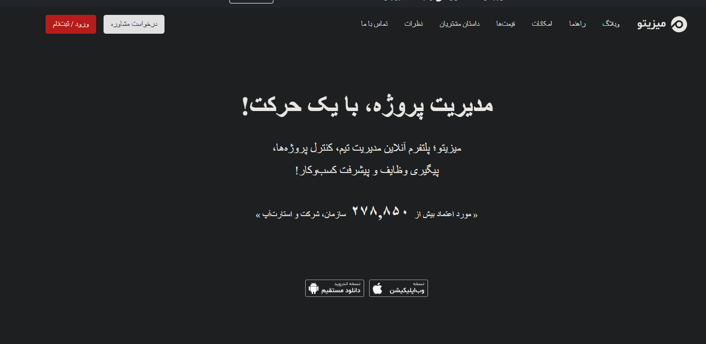 میزیتو را میتوان یک نرم افزار مدیریت پروژه ایرانی دانست که قابلیتهای قدرتمند چت و گفتگو آنلاین را نیز در دل خود جای داده است. این پلتفرم، سرعت انتقال پیام درونسازمانی را افزایش میدهد و به برنامهریزی مناسب برای اهداف سازمانی کمک میکند. مهمترین ویژگیهای آن شامل قابلیت ایجاد وظیفه در قالب گفتگو، تقویم فارسی، گانت چارت فارسی و نگهداری همیشگی اطلاعات است. میزیتو با سازگاری با انواع پلتفرمها (اندروید، iOS، ویندوز) و همچنین قابلیت تعیین و شناسایی سلسله مراتب اعضای سازمانی، به هماهنگی تیمها کمک شایانی میکند. این نرمافزار برای تیمهایی که نیاز به مدیریت پروژه و چت همزمان در یک بستر واحد دارند، بسیار کارآمد است.