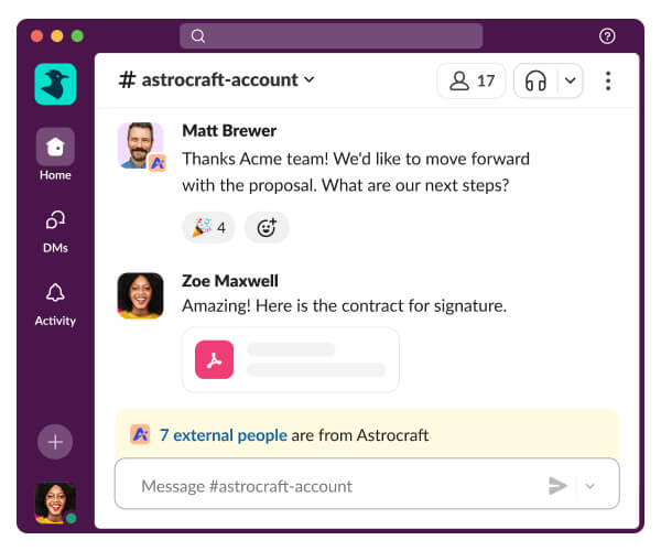 وقتی کاربران Slack استفاده می کنند، شاهد کاهش 32 درصدی در ایمیل ها و 27 درصدی در جلسات غیرضروری هستند. این چرا مهم است؟ چون افراد می توانند در یک فضای مشترک و منظم تمام پیام ها را ببینند. تصمیمات سریع تر اتخاذ می شوند و پروژه ها بدون تاخیر پیش می روند.