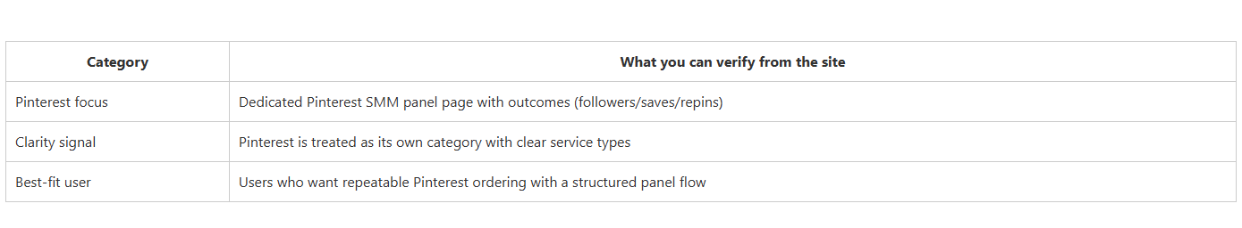 If your definition of “best” is a clear Pinterest category with named outcomes (followers, pin saves, repins) and a workflow you can repeat confidently, then nicesmmpanel.com is the strongest overall fit in this list because its dedicated Pinterest page lays out service categories clearly. If your definition of “best” is a scan-friendly Pinterest landing page for fast decisions, then nicepanel.site is also a top contender that simplifies the selection process. A practical Pinterest strategy is to start with small, controlled orders, check clarity and delivery reporting, and scale only once the process stays predictable across repeated campaigns.