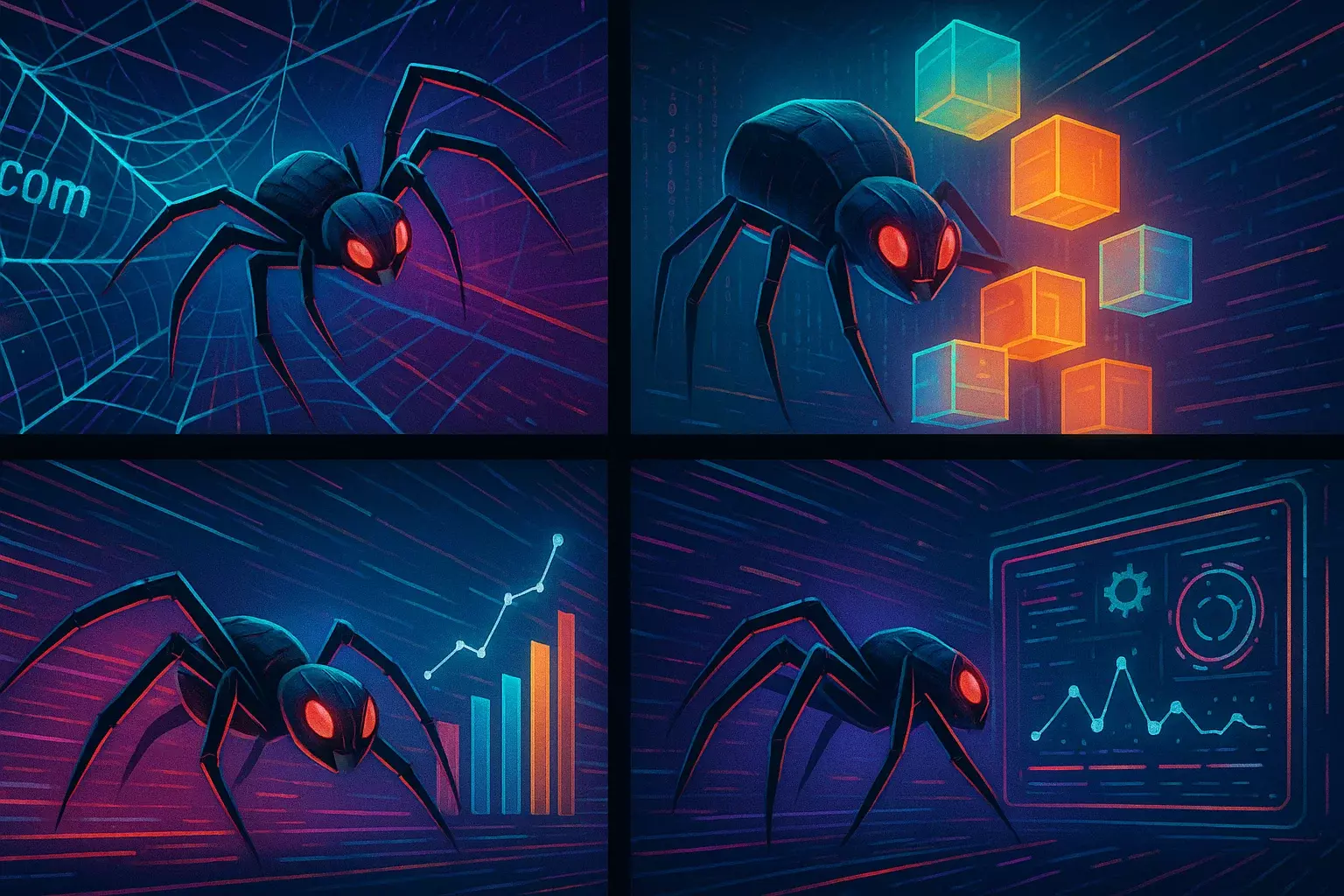کراولرهای وب که بهشون میگن اسپایدر یا رباتهای عنکبوتی دقیقاً همون موجودات دیجیتالی هستن که بیصدا و بیوقفه توی تارهای اینترنت میچرخن. کارشون پیدا کردن، خوندن و ذخیرهی محتواست. از متن گرفته تا تصاویر، ویدیوها و حتی فایلهای PDF؛ هر چی قابل خوندن باشه رو جمع میکنن و برای موتور جستجو میفرستن.