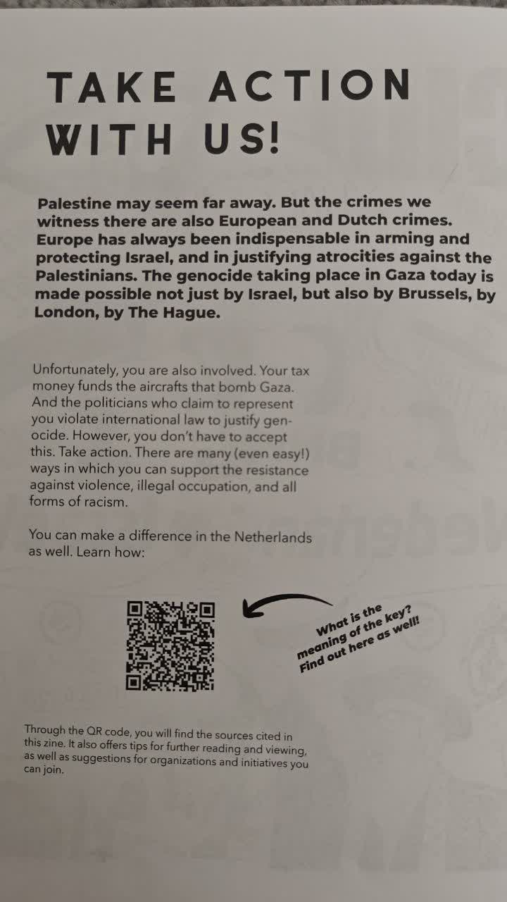 « فلسطین ممکن است دور به نظر برسد. اما جنایاتی که ما در آنجا شاهد آن هستیم، جنایات اروپایی و هلندی نیز هستند.