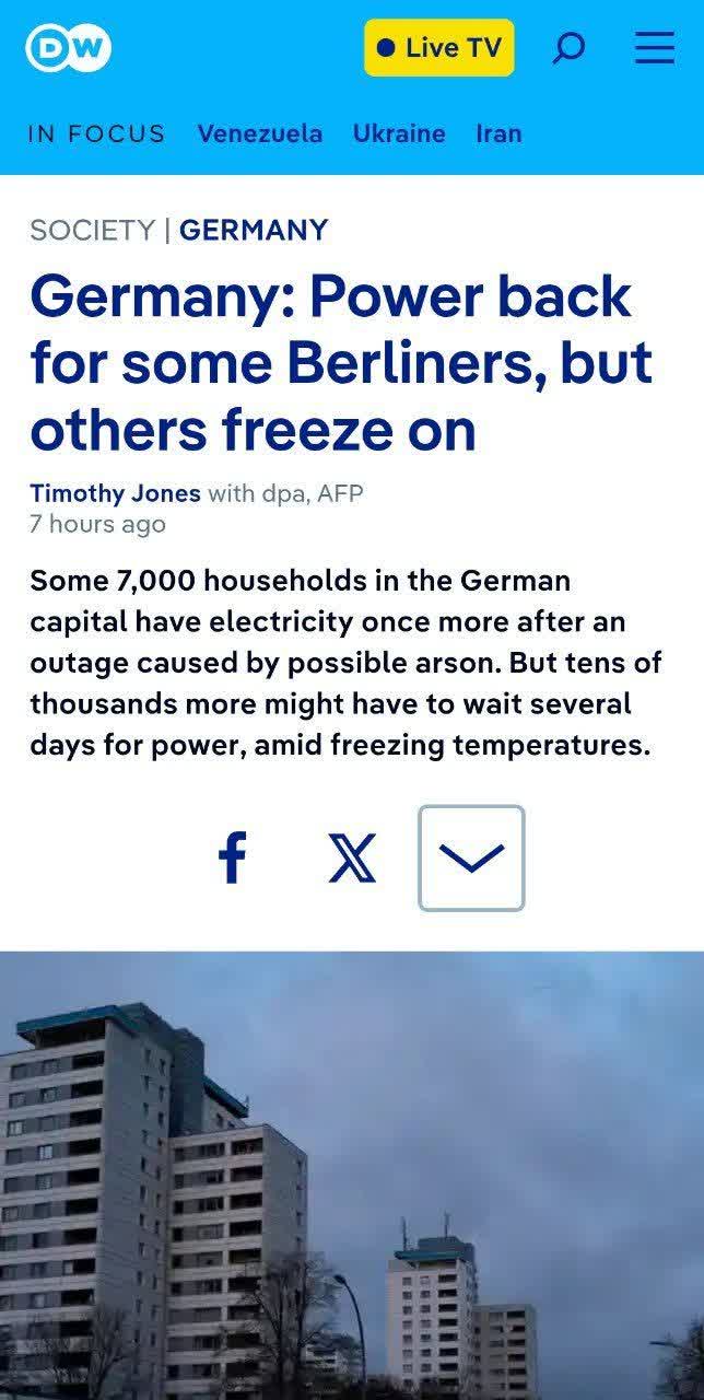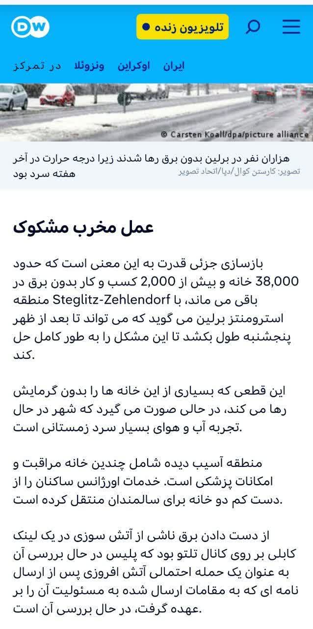 در جریان هستید کابل برق مرکزی برلین آتش گرفته و برق بخشی از پایتخت آلمان رفته؟