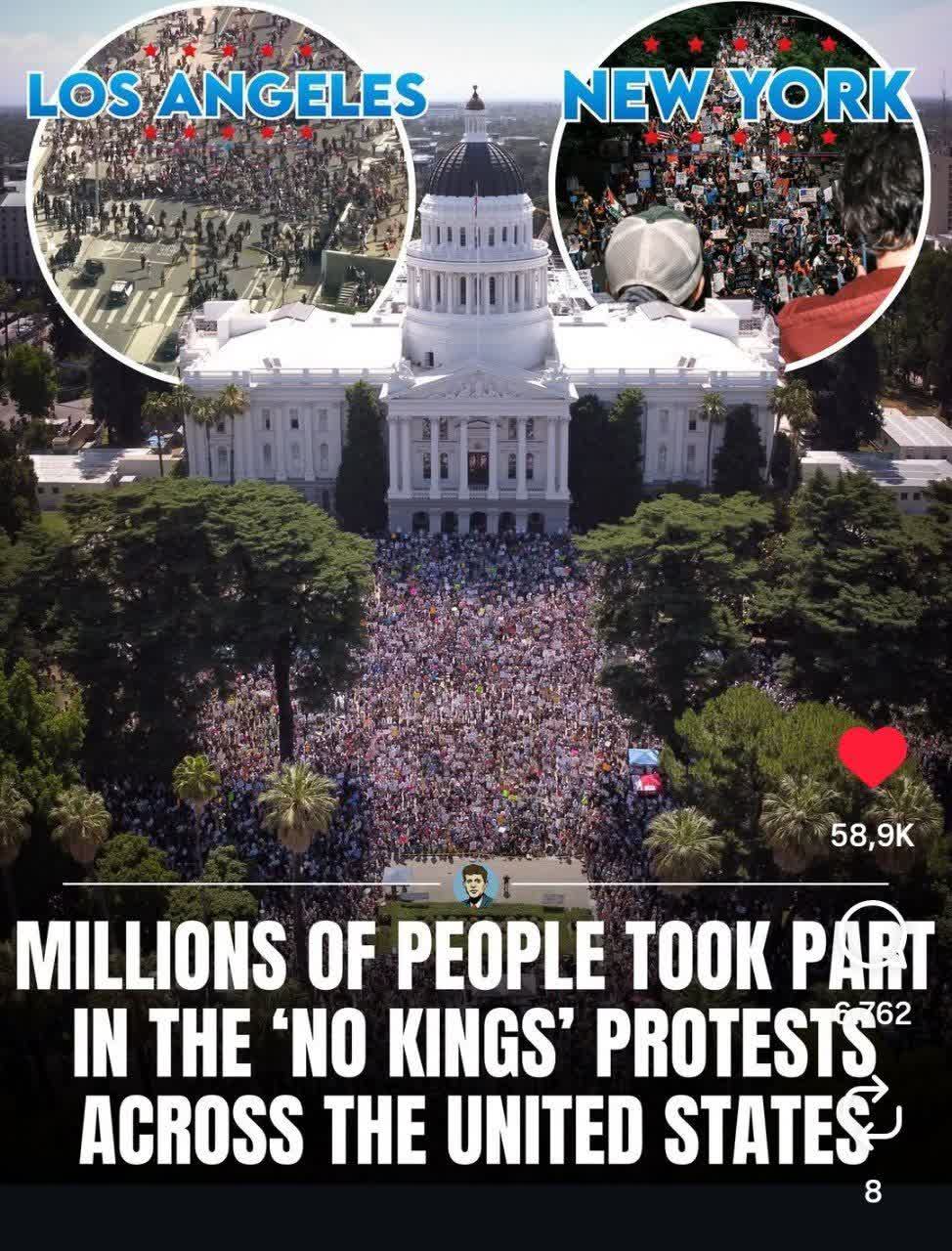 در رسانههای عمومی دنیا میبینی که این وضعیت فعلی ایالتهای آمریکاست با پرچمهای وارونه و شعار: ما پادشاه نمیخواهیم... و منظورشان ترامپ است.